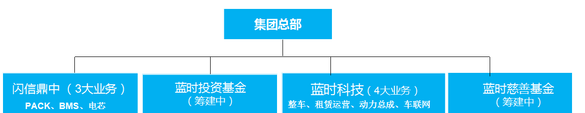 藍時集團是以新能源汽車產業為主軸,集產、學、研、用于一體的創新型高新技術企業;集團分四大板塊,業務覆蓋新能源汽車整車、動力電池包、BMS、電芯、動力總成、汽車租賃和車聯網等七大產業,形成新能源汽車全產業生態鏈。藍時集團總部位于北京中關村產業園區;研發中心分別設立在北京、上海、臺北、香港和美國底特律。