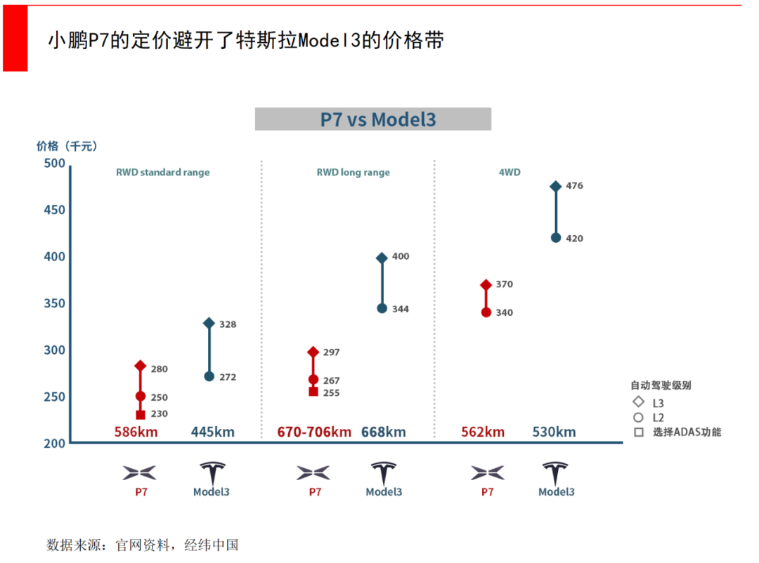 小鵬的定位就是這么清晰,它可能并不奢華,但針對的就是高性價比市場,它的定價整體低于特斯拉、蔚來和理想,產(chǎn)品力體現(xiàn)在續(xù)航和智能上,P7是目前續(xù)航里程最高的純電量產(chǎn)車型之一。