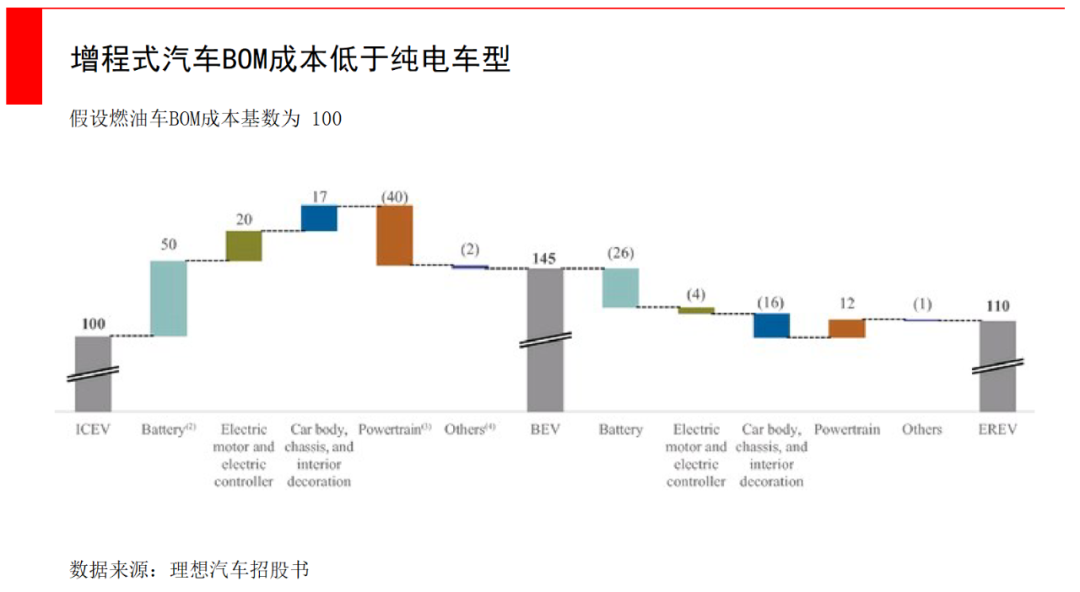 除了高速工況表現(xiàn)一般的先天劣勢,增程比純電價格更低(因為電池安裝量小)、BOM成本較低,以及最重要的——車主沒有“里程焦慮”。