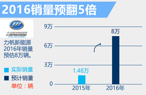 官方數(shù)據(jù)顯示,2015年力帆新能源汽車業(yè)務表現(xiàn)搶眼,全年累計銷售整車1.48萬輛,1782.78%的增幅也給力帆汽車樹立了信心。力帆實業(yè)(集團)股份有限公司副董事長陳衛(wèi)表示:“2016年,力帆將推出820EV等新能源車型。”網(wǎng)通社在與力帆新能源溝通后獲悉,除820EV外,650EV也計劃于年內(nèi)投放市場。陳衛(wèi)還表示,今年力帆新能源車銷量將突破8萬輛,這個數(shù)字比2015年實際銷量翻了5倍以上。