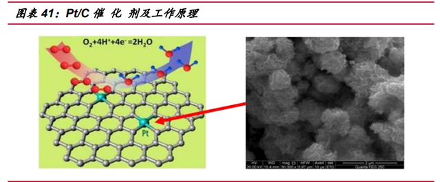 在降低催 化劑成本的方面,目前有兩條路徑,一條是降低鉑的使用量,另一條 則是研發(fā)非鉑催 化劑,兩者都已有所進(jìn)展。鉑使用量的降低現(xiàn)在已有所成效,縱觀 燃料電池發(fā)展史,每平方厘米需要的鉑已經(jīng)從最初的 50mg 降低到了現(xiàn)在的不足 0.2mg。而非鉑催 化劑也在研究中,雖然無鉑催 化劑尚未進(jìn)入工業(yè)應(yīng)用的階段,但 很可能是未來大幅降低燃料電池成本的關(guān)鍵。