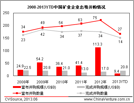 圖3 2008-2013YTD中國礦業企業出境并購情況