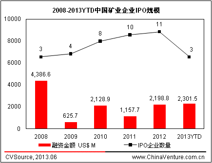 圖2 2008-2013YTD中國礦業企業IPO規模