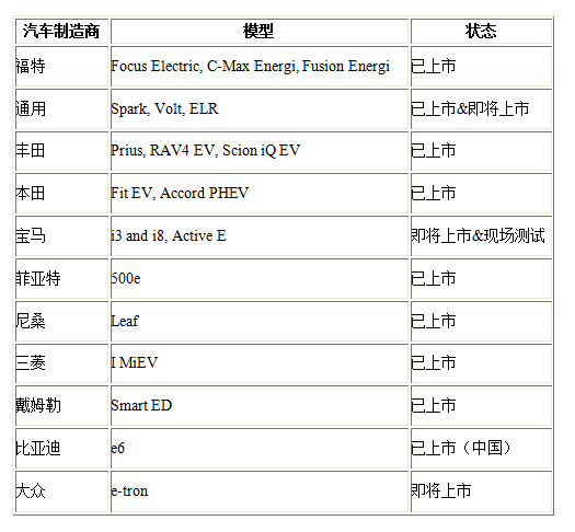 下圖是幾大汽車制造商正在出售或即將出售的新型汽車。