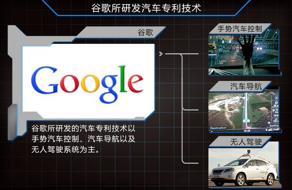 目前谷歌所擁有的汽車技術專利項目,主要包括汽車導航、手勢汽車控制和無人駕駛系統,并且還包括只能設備和整車集成技術等不同科技。其中大多數專利是來自于其日前正式收購的摩托羅拉公司。不過在無人駕駛汽車方面,谷歌在2005年便已開始進行相關研發、并已搭載到豐田普銳斯、奧迪TT和雷克薩斯RX等多個級別產品。