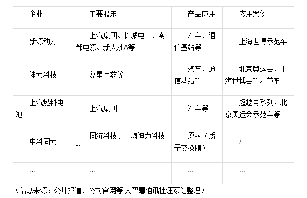 大智慧通訊社多方人士了解的情況與上述觀點基本吻合,目前與燃料電池相關的企業主要有--上海神力、新源動力、上汽燃料電池、中科同力、世紀富源、飛馳綠能、北京綠舍、北京金能等;研究所及高校主要有-中國科學院大連化學物理研究所、中國科學院長春應用化學研究所、中國科學院上海硅酸鹽研究所、中國科學院寧波材料技術與工程研究所、中國礦業大學(北京)燃料電池聯合研究中心、清華大學、同濟大學、上海交通大學、華南理工大學、天津大學、中國科學技術大學、武漢理工大學、華中科技大學等。