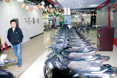 前日上午10點,原本熱鬧的中南路萬國電動車市場門可羅雀。近30家電動車經(jīng)營戶,僅一戶開門營業(yè)。店內擺放的近20輛電動車,每款車上掛著“合格目錄、可上牌照”的招牌,電動車均價為2000余元。盡管店內工作人員極力推介,但前來店內咨詢的兩名顧客還是沒動心。“以前一天七八臺不成問題,現(xiàn)在即使搭上各種優(yōu)惠條件,如免費贈送頭盔、護膝、手套等,也鮮有人買。”