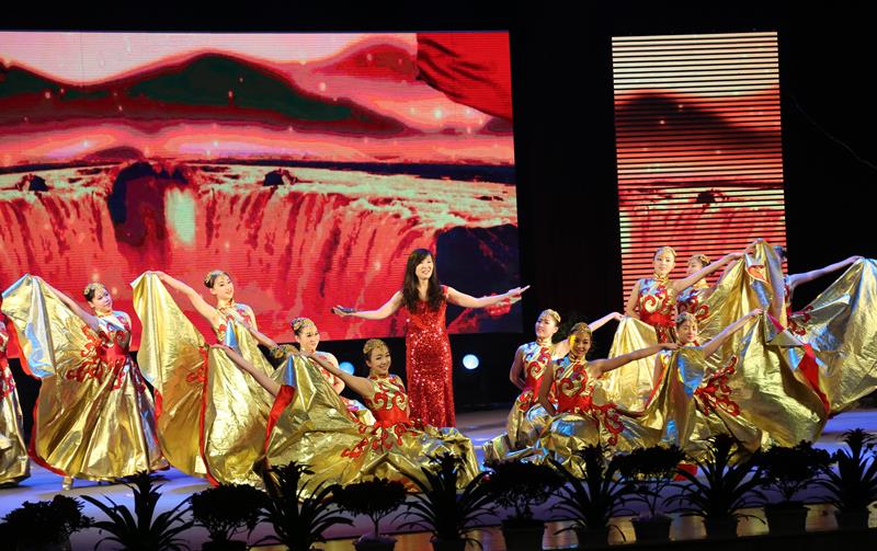 慶典大會上,文藝節目精彩紛呈,現場微信搖獎、抽獎活動讓大家High翻了天,臺上臺下,一起互動,把現場的氣氛推向高潮。 離退休員工獻舞《中國紅》