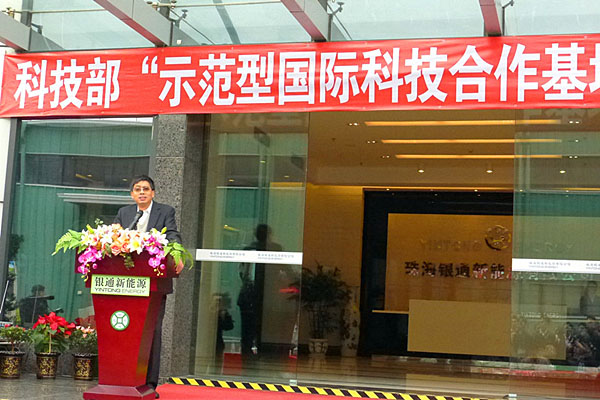 近日,國家國際科技合作基地在珠海銀通新能源有限公司舉行揭牌儀式??萍疾繃H合作司陳霖豪副司長、廣東省科技廳龔國平副廳等領導出席。