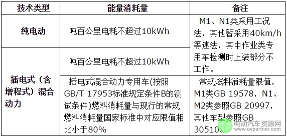 純電動、插電式混合動力(含增程式)專用車、貨車能量消耗量須符合以下要求: