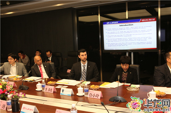 在參觀了力帆汽車(chē)生產(chǎn)線,觀看了力帆純電動(dòng)汽車(chē)新產(chǎn)品后,力帆集團(tuán)總裁尚游和新能源團(tuán)隊(duì)與客人進(jìn)行了友好的座談。會(huì)上,力帆新能源團(tuán)隊(duì)向特斯拉的客人介紹了力帆純電動(dòng)汽車(chē)的現(xiàn)狀以及未來(lái)的發(fā)展方向。