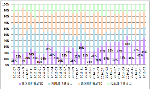 圖2 自韓國進(jìn)口量占比日漸增加