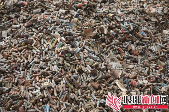 4月14日上午10時許,記者趕到現場看到,在位于橋頭村村西一里處水泥路面北側有一大堆電池被傾倒在路側的下坡上,還有很多電池滾落到了坡下面的溝中,在此處形成了一個4米長,3米寬的廢舊電池堆。記者注意到,里面有5號的、1號的家庭常見的電池,還有一些不常見的各種形狀的電池,這些電池大部分都已生銹。看到記者在拍照,許多路過的村民就停了下來。“我還真沒發現,這東西怎么能隨便亂倒呢,還倒了這么多,得有一拖拉機。”村民張大爺氣憤地說。