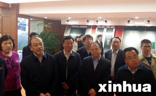 武漢市委書記阮成發(左二)一行參觀漢能公司。陳敢 攝