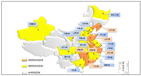 截止2012年8月,我國總計批復了22省區市的28個“城市礦產”示范基地,其區域分布見下圖。其中,遼寧、山東、浙江、安徽、湖南及廣東六省已有兩個示范基地獲批,北京、天津、重慶、上海、河北、黑龍江、新疆、四川、河南、湖北、山西、寧夏、廣西、福建、江西、江蘇等省市則有一個示范基地獲批。