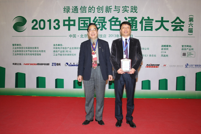 南都電源榮獲“2013年度中國綠色通信創(chuàng)新金獎”,公司總工程師吳賢章領(lǐng)獎