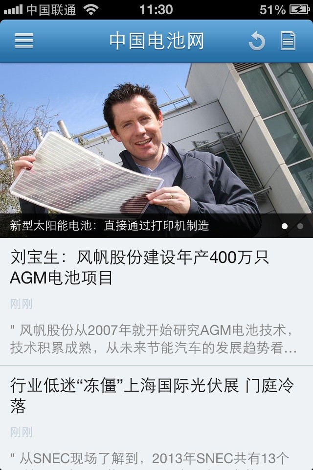 【本網訊】 在中國電池網上線兩周年之際,中國電池網手機客戶端(下載地址: http://m.gdsxkw.cn/about/app.html )同步升級,讀者 期待的列表頁新增了焦點圖輪播功能。昨日(18日)已編譯上線,