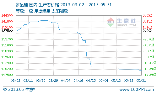 本月多晶硅市場(chǎng)價(jià)格小幅下調(diào),主要原因有以下幾個(gè)方面:(一)由于市場(chǎng)價(jià)格長(zhǎng)時(shí)間低位徘徊,個(gè)別廠家出現(xiàn)與成本倒掛現(xiàn)象,商家的信心受到影響,多個(gè)復(fù)產(chǎn)計(jì)劃也都被擱淺;(二)上游價(jià)格穩(wěn)定,多晶硅成本短期內(nèi)難以下降;(三)下游光伏在歐盟“雙反”的壓力下艱難生存,5月發(fā)布的47%的高額關(guān)稅使中國(guó)光伏在海外市場(chǎng)失去競(jìng)爭(zhēng)力。(四)下游需求的低迷一直蔓延到上游,國(guó)內(nèi)開(kāi)工率很低,庫(kù)存居高不下。