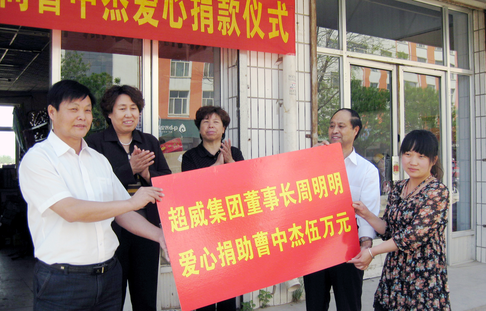 5月16日上午,一個(gè)簡短、樸素的捐助儀式在代理商曹中杰的店鋪門口舉行,妻子陳麗麗代表正在天津治療的丈夫接受了捐助,她滿含熱淚表達(dá)了對超威集團(tuán)和全體超威人的感激之情,并表示要和丈夫一起努力抗?fàn)帲瑧?zhàn)勝病魔,把超威電池代理業(yè)務(wù)作為可以傳承的家族事業(yè)做大做好,以報(bào)答大家的關(guān)愛之情。在現(xiàn)場,工作人員還受集團(tuán)一位高管的委托,以一個(gè)普通共產(chǎn)黨員的身份匿名捐助了1200元。廣靈縣人大副主任班海霞,縣慈善總會名譽(yù)會長崔玉梅,縣慈善總會副會長兼秘書長武仲善,縣委辦副主任張治國等當(dāng)?shù)卣I(lǐng)導(dǎo)也參加了捐助儀式。