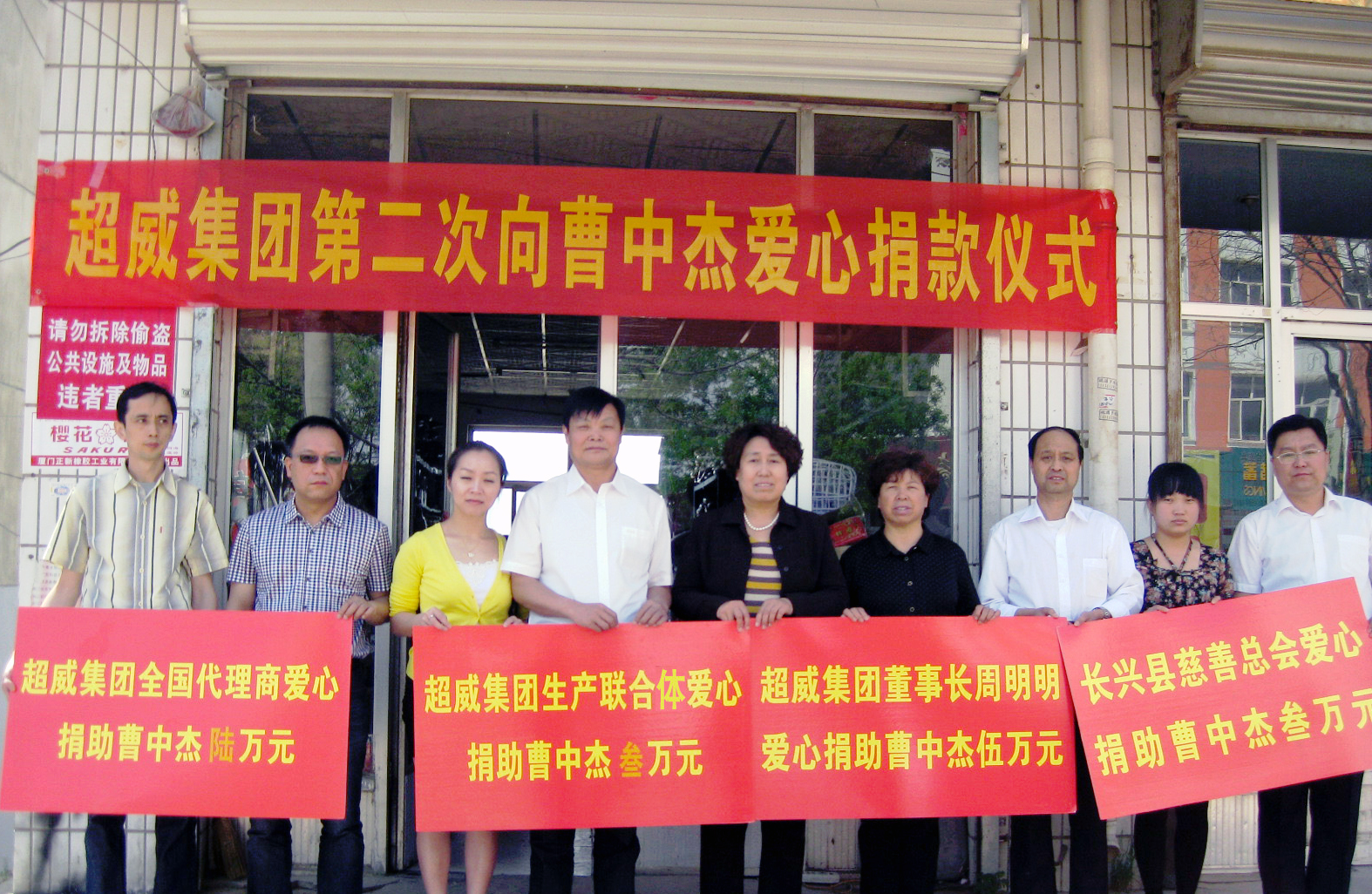 去年11月22日,超威集團(tuán)領(lǐng)導(dǎo)得知山西廣靈代理商曹中杰患病急需手術(shù)治療,家庭特別困難時(shí),當(dāng)日下午,超威集團(tuán)黨委就立即開展了愛心捐助活動,集團(tuán)黨委書記、總裁楊新新帶頭捐款,現(xiàn)場共收到捐款11750元。黨員的愛心捐助行動感動了集團(tuán)廣大員工,一場大愛行動在全國各地的代理商中匯成了愛的潮流。截止去年11月30日,共收到捐款40510元。