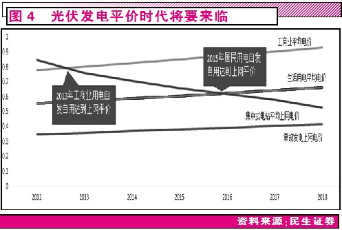 如果沒有前幾年光伏產(chǎn)業(yè)的危機,就沒有光伏發(fā)電成本的大幅度下降。而只有發(fā)電成本的大幅度下降才使得光伏發(fā)電替代傳統(tǒng)能源成為可能,這或許才是巴菲特近幾年在光伏產(chǎn)業(yè)陷入最嚴(yán)重危機時而布局光伏發(fā)電站的原因(見圖4)。
