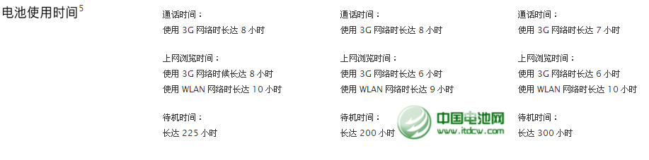 不知蘋果是否刻意而為還是隱藏什么,在網站的產品技術參數上從來不以mAh來標稱,只是說某某功能能用多少小時(這對不十分專業的消費者來說只是安慰安慰而已)。