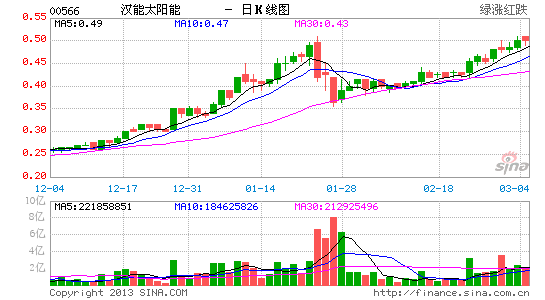 漢能太陽能昨大升20%,收報0.6元,創52周新高,成交量大增至4.51億股。其中逾一半成交量(約2.8億股)集中在下午2時42分后出現,該段時間股價亦突然由0.53元升上0.6元。適逢母公司昨亦大手增持漢能太陽能1.023億股,成交量占總成交22.7%。市場一直關注母公司會否注入中游太陽電池板或其他業務,財務董事許家驊稱,由于母公司今年2月已收購漢能太陽能50.65%股權,故受證監條例所限,兩年內不得注資超過50億元,否則變成借殼上市,而中游電池板業務約值200億至300億元,故兩年內注入此項資產的可能性不大。