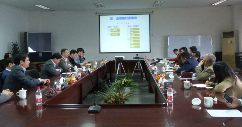 王順林向周日星廳長介紹了公司近期發(fā)展情況。王總裁說,寧波金和新材料股份有限公司成立15年來,專注于鋰離子電池正極材料的研發(fā)、生產(chǎn)和銷售,主要產(chǎn)品有鎳鈷錳氫氧化物、鋰鎳鈷錳氧化物、四氧化三鈷、鈷酸鋰、錳酸鋰等鋰電主流正極材料。公司已發(fā)展成為在浙江、江蘇等地擁有三家子公司的集團型企業(yè),年銷售總額超過10億元。公司是國家級高新技術(shù)企業(yè),也是浙江省管理創(chuàng)新示范企業(yè),同時擁有“金和電池材料省級高新技術(shù)企業(yè)研究開發(fā)中心”,先后承擔過3項國家火炬計劃及星火計劃項目,擁有14項專利技術(shù),其中發(fā)明專利11項。公司生產(chǎn)的“高結(jié)晶度鈷酸鋰”和“多元鎳鈷錳酸鋰產(chǎn)品研發(fā)與產(chǎn)業(yè)化”先后兩次獲得浙江省科技進步二等獎。