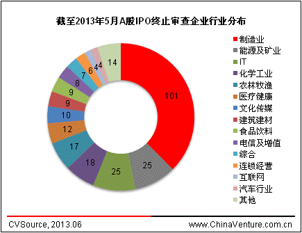 圖1 截至2013年5月A股IPO終止審查企業行業分布