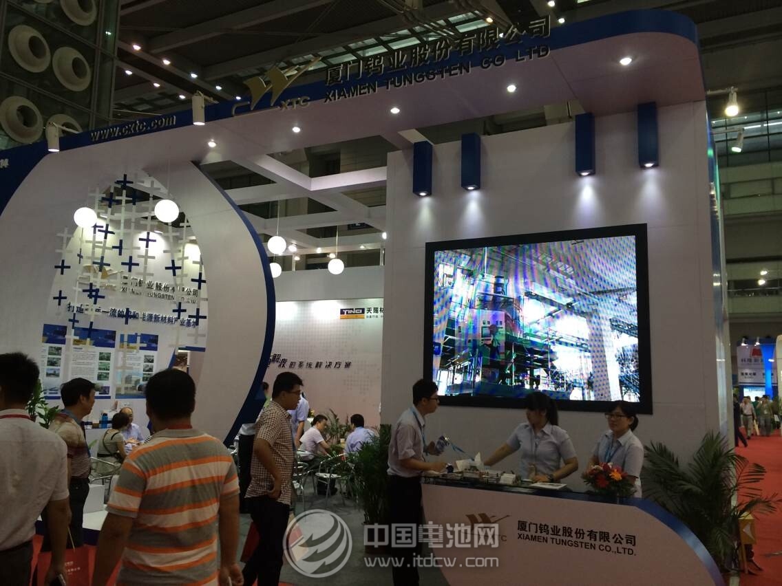中國電池雜志-中國電池網(微號:mybattery)6月19日訊(肖何 梁小婧 丁丁 深圳報道)18日上午,由中國化學與物理電源行業協會主辦的第十一屆中國國際電池技術交流會/展覽會(CIBF 2014)在深圳國際會展中心隆重開展,這是中國電池行業第一個通過商標注冊保護的國際性會展。CIBF 2014期間,參展商還將舉辦20多場新產品新技術專題發布會,同期還將舉辦“2014中國國際電池前沿技術交流會”和“國際買家采購洽談會”。中國電池網(微號:mybattery)應邀全程圖文直播,展位號為6E02。圖為廈門鎢業展位。