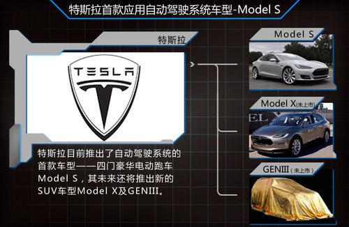 在特斯拉現(xiàn)有的產(chǎn)品陣容中,其已推出一款主力產(chǎn)品,該車便是四門豪華電動跑車Model S。日前,艾隆?馬斯克表示:“特斯拉正在緊鑼密鼓開發(fā)一款實用的自動導(dǎo)航系統(tǒng),用于Model S。”同時,根據(jù)特斯拉的產(chǎn)品規(guī)劃,其未來還將推出新的SUV車型Model X及GENIII。