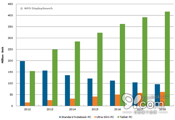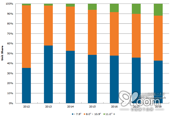 NPD的數(shù)據(jù)顯示,全球平板電腦出貨量今年第一季度首次下滑,部分原因是市場(chǎng)對(duì)小尺寸平板電腦(7英寸到7.9英寸之間)需求量的下降。去年這種小尺寸的平板電腦出貨量約占全球整個(gè)平板電腦出貨量的58%。NPD方面稱,在中國(guó)和其他新興市場(chǎng)上,來(lái)自大顯示屏智能手機(jī)(顯示屏超過(guò)5.5英寸)的競(jìng)爭(zhēng)威脅對(duì)這些小顯示屏平板電腦的市場(chǎng)需求產(chǎn)生了損害。
