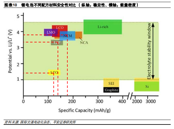 出于安全性考慮,正極材料需要與電解液的相容性和穩定性好。常見的正極材料在溫度低于 650℃ 時是相對比較穩定的,充電時處于亞穩定狀態。在過充的情況下,正極的分解反應及其與電解液的 反應放出大量熱量,造成爆炸。