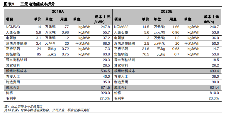 1) 2019年 LG化學表明NCMA四元電池將于 2022 年實現大規模量產,三星 SDI的 NCA 和 NCM 兩種動力電池路線的鈷含量都已經控制到了 5%,而且致力于實現無鈷化。特斯拉 NCA 電池的配比已經低于競品的 811,長遠目標是將鈷含量降至零。