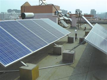 在小區一座7層小樓的樓頂,記者見到了徐鵬飛和他的“家庭電站”。9塊太陽能電池板分成兩排,占地近20平方米。他告訴記者,裝置共2千瓦,夏季每日發電量約為10千瓦時,冬季光照時間短,在3到5千瓦時之間。