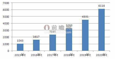 前瞻產(chǎn)業(yè)研究院綜合未來行業(yè)下游發(fā)展情況,國家相關(guān)產(chǎn)業(yè)政策的影響,結(jié)合鋰電池市場規(guī)模的歷史數(shù)據(jù),采用多項式擬合預(yù)測2015-2020年中國鋰電池的市場規(guī)模。到2017年鋰電池行業(yè)市場將達到2300億元左右,2020年行業(yè)市場規(guī)模達到6000億元左右。