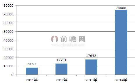 圖表1:2011-2014年中國新能源汽車動力鋰電池市場規(guī)模(單位:萬元)