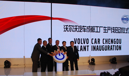 開業(yè)典禮當天,沃爾沃S60中國第一位車主,京劇表演大師梅葆玖先生、沃爾沃汽車集團生產(chǎn)與采購高級副總裁拉爾斯.韋伯(Lars Wrebo)、沃爾沃汽車中國業(yè)務高級副總裁拉爾斯.鄧(Lars Danielson), 以及去年在成都舍己救人的“洋雷鋒”生產(chǎn)制造工程師哈羅德.葛貝爾(Harald Gobel)一同登臺,在各級政府領導和瑞典大使館代表、媒體的見證下,為成都工廠的啟動拉開序幕。