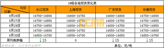 一、現(xiàn)貨市場:本周現(xiàn)貨鉛價漲跌不大,由于下游鉛酸蓄電池需求依舊表現(xiàn)欠佳,市場不確定因素增強(qiáng),加之月末貿(mào)易商資金緊張的關(guān)系,有些持貨商出貨意愿有所下降,下游仍畏高按需采購,總體報價在之間,因交投表現(xiàn)欠佳,料短期內(nèi)國內(nèi)現(xiàn)貨鉛價變化不大。