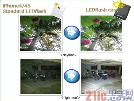 其二村田EDLC應(yīng)用于LED閃光燈,或者馬達(dá)驅(qū)動等瞬間需要大電流放電的設(shè)備中,進(jìn)行峰值輸出輔助。以下是2張未使用以及使用了EDLC產(chǎn)品的LED閃光燈對比圖。