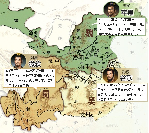 作為“三足”里最弱的一方,微軟掌門人鮑爾默將會在12個月內退休。這是WP走向未來的一個風險——這一幕又和劉備白帝城托孤有些像——接下來故事的關鍵是,微軟會找到一個百折不撓的諸葛亮,帶著理想成功殺進中原嗎?