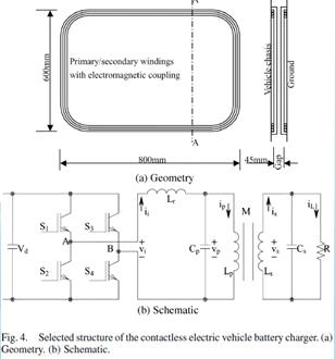 系統由位于汽車外部主級電路和位于汽車的內部的次級電路、整流器以及驅動系統構成。通常在充電的時候,帶有扁平鐵芯的主級線圈,即耦合器,是通過手動的方式被插在次級鐵芯中一個縫隙處,這樣,能量就能夠從安置在底層的主級電路被轉換到電池中。