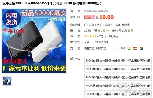 通過上面的截圖,我們能夠獲知該賣家所售移動電源標稱為50000mAh,而售價僅僅才19元而已,如果讀者有經(jīng)常關注華強北電腦網(wǎng)的話就會意識到這樣的定價和容量是存在問題的,不僅容量沒有那么多,而且電芯的質量肯定也存在問題,廢舊電芯是發(fā)生爆炸的原因之一。