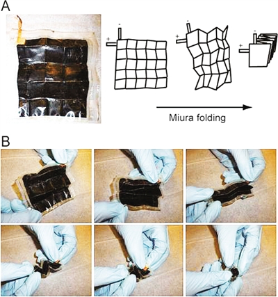 據(jù)物理學(xué)家組織網(wǎng)10月9日(北京時(shí)間)報(bào)道,美國亞利桑那大學(xué)科學(xué)家開發(fā)出一種紙基鋰離子電池,能做多次對(duì)折或折成Miura-ori型(類似地圖折法),由于折疊后變得更小,表面能量密度和電容