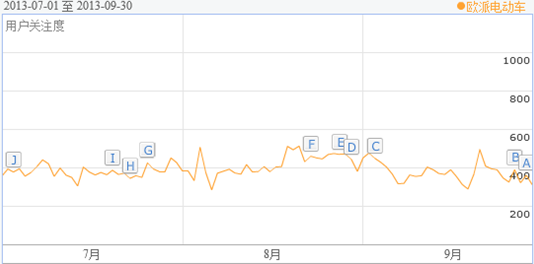 從數據可以看出,第三季度愛瑪在各個項目中均表現出色。首先在媒體曝光度上,網絡相關新聞傳播總量超過1000條,拉大了與第二陣營中企業的差距。具體來看,7月中,由其代言人周杰倫導演兼主演的電影《天臺愛情》熱播,更是讓愛瑪的用戶關注度迅速飆升。8月份,由愛瑪電動車獨家冠名播出的大型明星互動模仿秀《天下無雙》第一季正式收官,但持續不斷的線下活動也為愛瑪制造了無數的話題。9月,愛瑪推出最新力作路可兒(ilook),成功掀起電動美學新概念革命,極具未來感和科技感的新品更與iPhone5s同臺角力,從而收獲了大批的人氣。