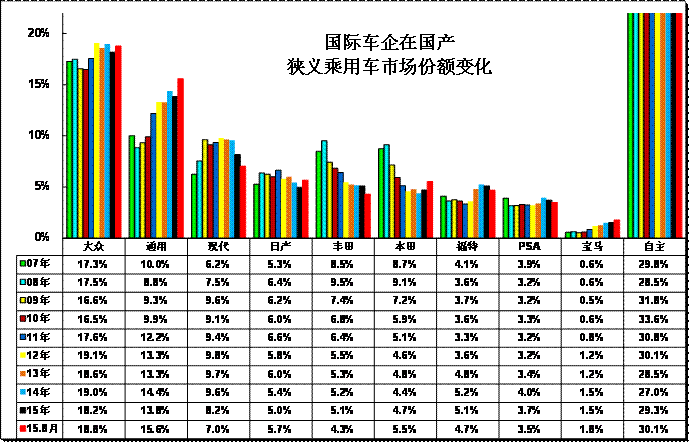 圖表 17跨國(guó)集團(tuán)中國(guó)狹義乘用車市場(chǎng)歷年表現(xiàn)