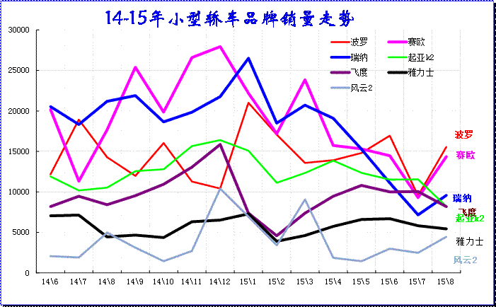 圖表 27小型轎車主力品牌2015年走勢