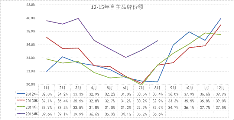 15年自主份額高企主要也是合資的市場(chǎng)表現(xiàn)較差,換購(gòu)需求不足,自主的新購(gòu)需求相對(duì)較穩(wěn),導(dǎo)致自主的表現(xiàn)借助SUV異常超強(qiáng)。