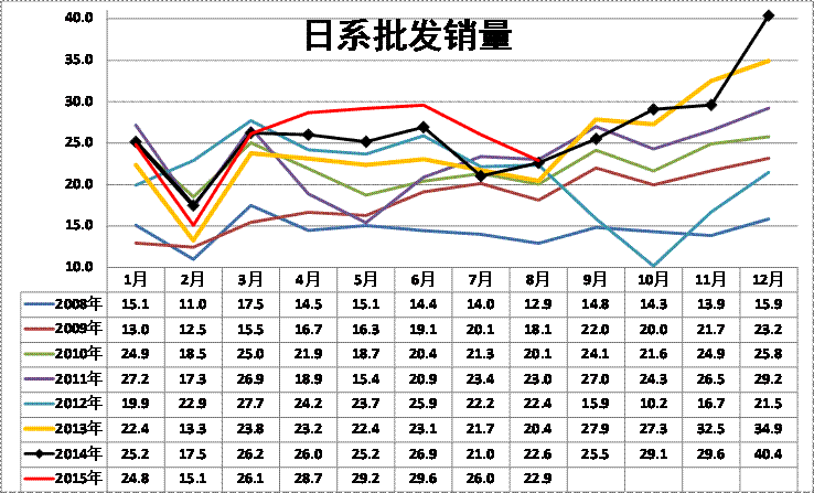 由于14年初的自主品牌出現(xiàn)起步低迷的現(xiàn)象。15年自主品牌表現(xiàn)超強(qiáng)。日系的4-7月走勢(shì)較強(qiáng),成為突出表現(xiàn)的唯一車系,這也是日系的產(chǎn)品根基較深,SUV新品市場(chǎng)認(rèn)可度高的結(jié)果。