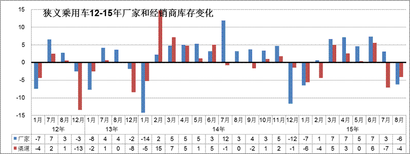 歷年3-8月都是庫(kù)存高增長(zhǎng)的局面,今年的增長(zhǎng)也是有必要的。14年12月到15年2月的廠家和經(jīng)銷商庫(kù)存雙降,急需3-8月的補(bǔ)庫(kù),因此15年的8月補(bǔ)庫(kù)實(shí)際潛力巨大,但8月的廠家?guī)齑娣e累很大,渠道庫(kù)存反而增長(zhǎng)較小,說明市場(chǎng)不好對(duì)經(jīng)銷商信心打擊較大。